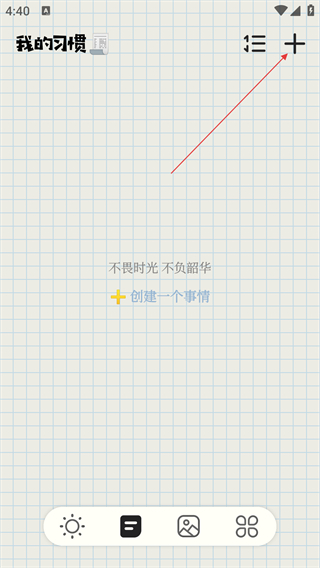 2、在“我的习惯”页面,点击右上角的“+”按钮,可打开添加新习惯的编辑界面。