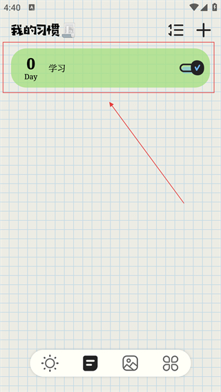 1、在主界面点击底部对应按钮,可切换至“我的习惯”页面,进入习惯管理模块。