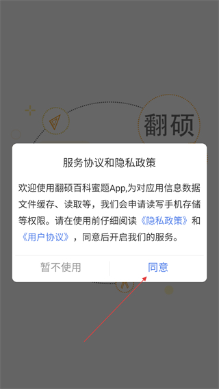 1、在【服务协议和隐私政策】弹窗中,点击【同意】按钮,即可进入应用主界面。