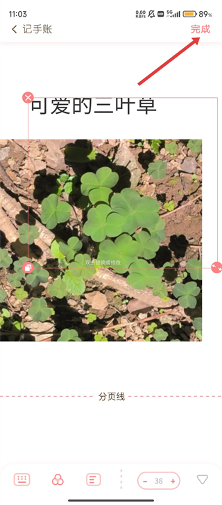 4、手账内容编辑完毕后,点击右上角【完成】按钮,就能保存这份手账,记录生活的小美好啦。