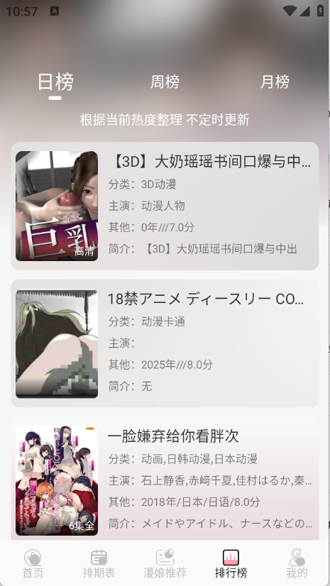 2首页顶部栏整合了丰富的动漫资源,包含日漫、韩漫与国产动漫等多种类别。