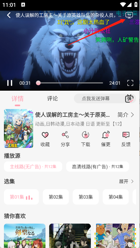 1、点开想要投屏的动漫,点击右上角的“TV”。