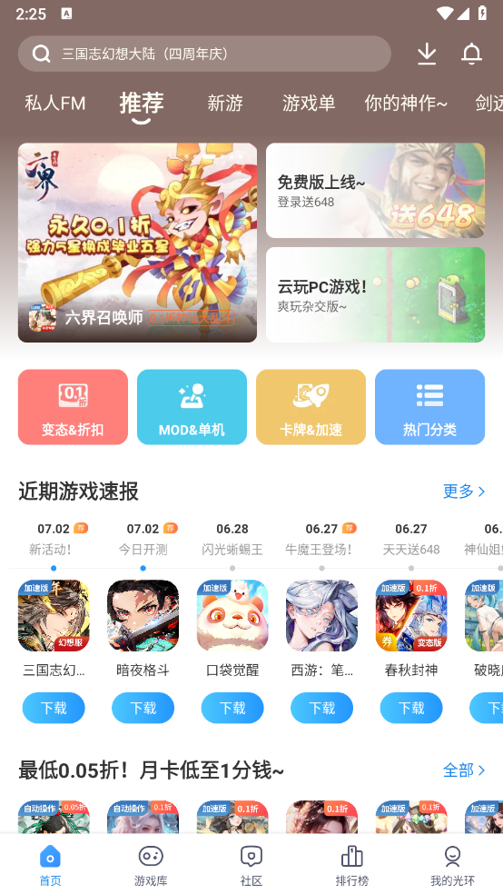 2在游戏资源集合里,能找到各式各样的游戏分类,像支持多人联机的、从电脑端移植过来的、还有抖音平台上热门的游戏板块,都能由用户自由挑选。