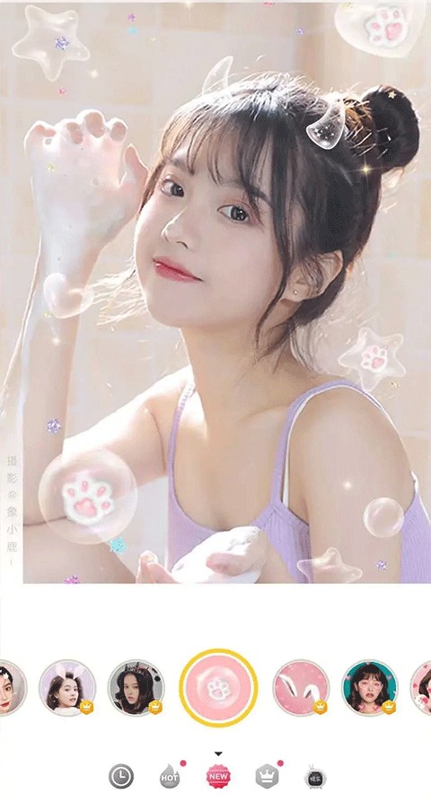 3、智能面部识别,帮助您识别面部表情,只需点击一下。各种有趣的动态贴纸,可爱可爱,你还可以与他们互动。