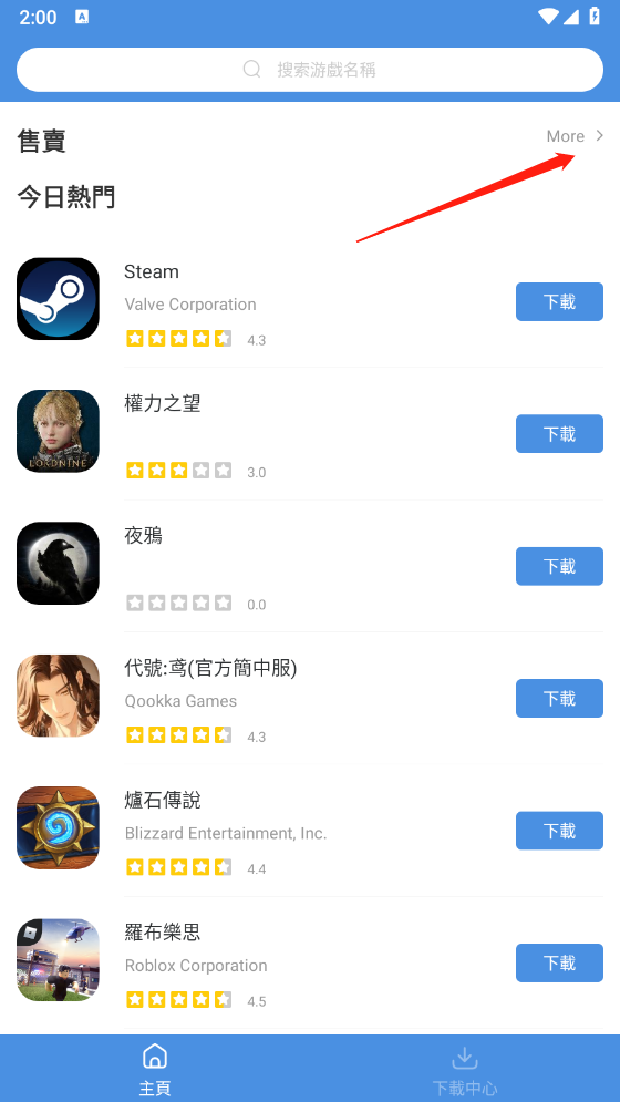 1打开后能发现丰富的游戏资源,点击“more”按钮可获取更多游戏内容。