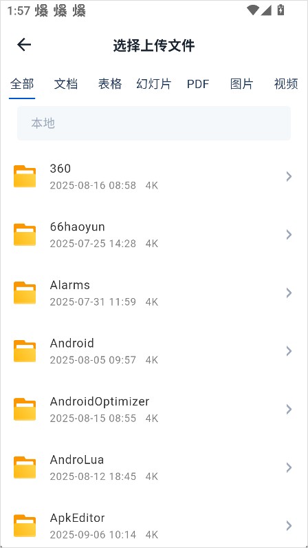 3、系统提供多种上传方式,比如从本地相册选择、直接拍照上传、上传文档、录音或其他类型文件。根据自己的需求选择合适的方式。