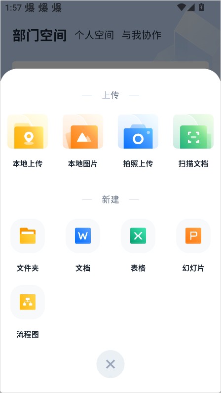 2、在页面右下角点击【+】号,会弹出上传菜单。