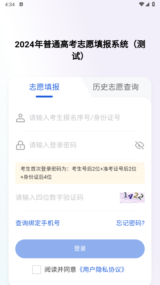 3接下来进入登录界面,填写考生的身份证号码与登录密码以完成登录操作。