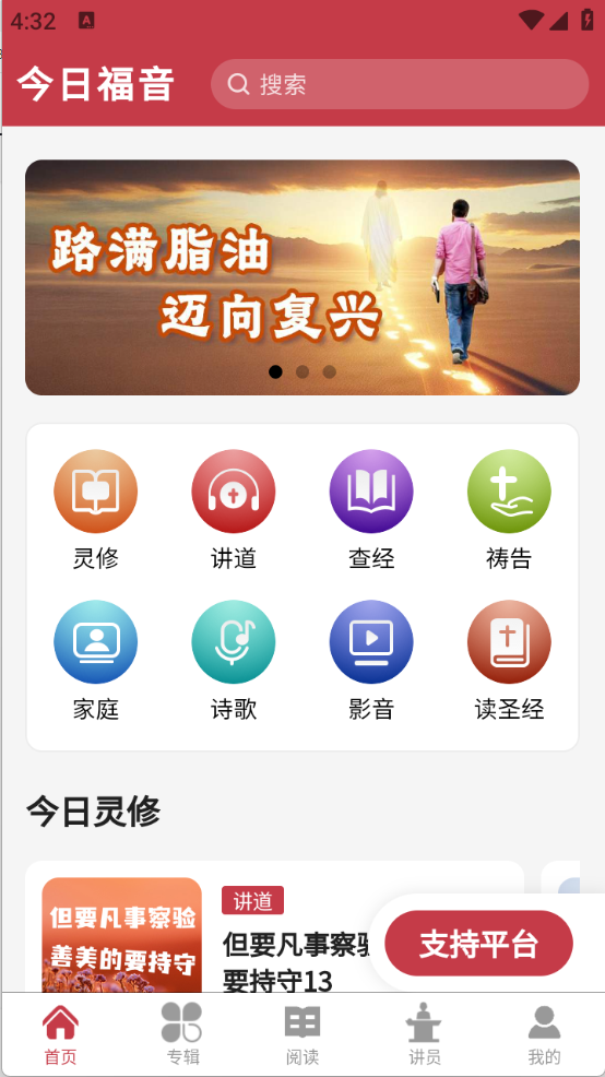 2、来到首页页面,为用户推荐了很多的圣经资源。