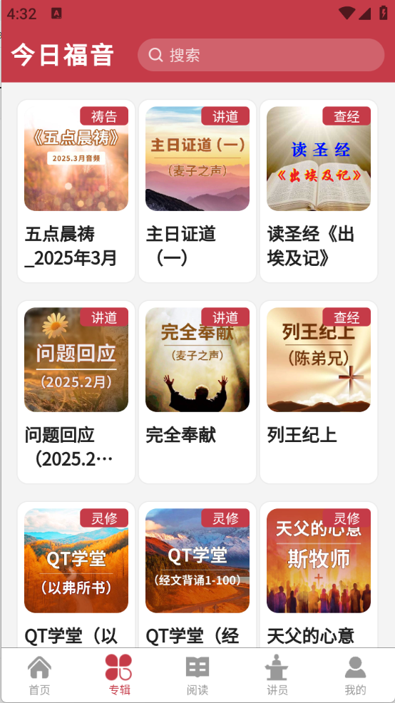 3、“专辑”页面,有很多的圣经音频可以查看。