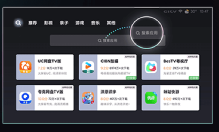 1启动电视、电视盒子或投影仪这类智能设备后,在设备界面中找到应用中心并点击进入。
