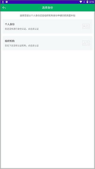 3请选择您的身份类型,您可以选择以个人身份使用,也可以选择进行组织机构认证。
