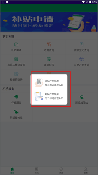 1、打开甘肃农机补贴,进入首页点击申请补贴。