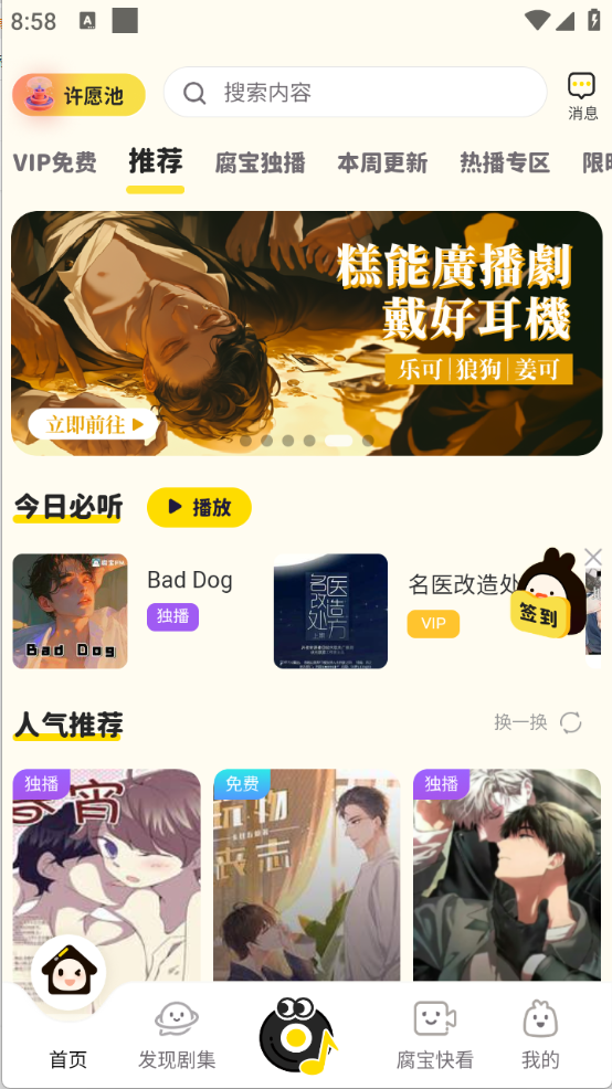2进入主页,你会发现这里集中展示了当下备受欢迎的广播剧作品,而页面最上方的导航栏则清晰罗列着各类内容分类,方便你快速找到感兴趣的类别。