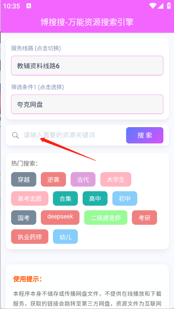 借助博搜搜这款应用查找各类资源的操作十分便捷。启动应用后,只需输入想要查找的关键词,就能获取对应的网盘内容。此外,用户还能利用的筛选工具,更精准地找到符合自身需求的资源类别。