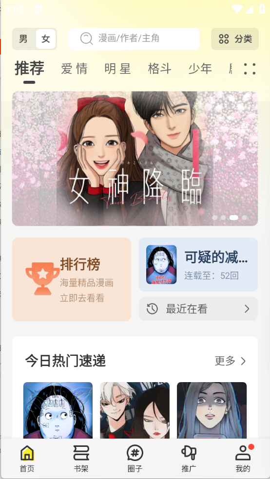 2、进入首页之后,顶部栏中汇集了海量的漫画资源类型。