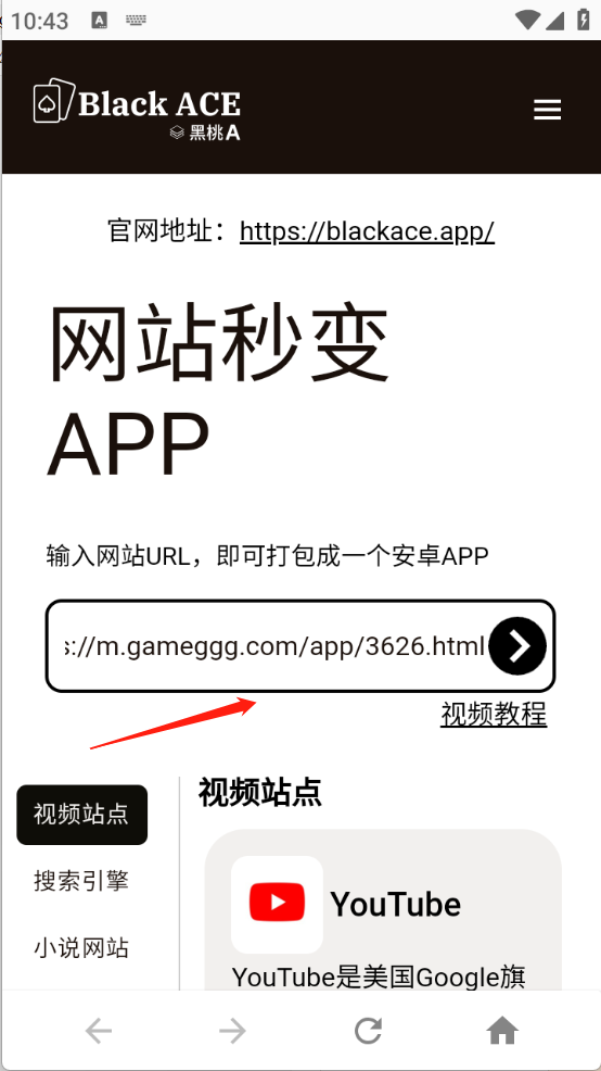 2、用户仅需输入网站URL,就能快速把在线工具网站打包成安卓应用。整个过程无需复杂设置,哪怕是技术小白也能轻松操作
