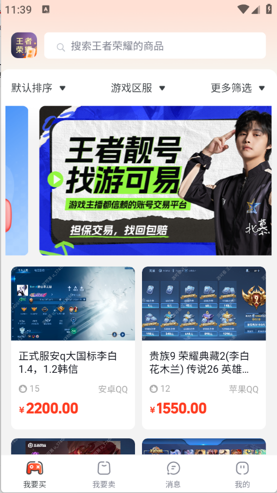 2进入首页后,这里汇集了大量游戏账号,你也能通过关键词来精准查找所需账号。