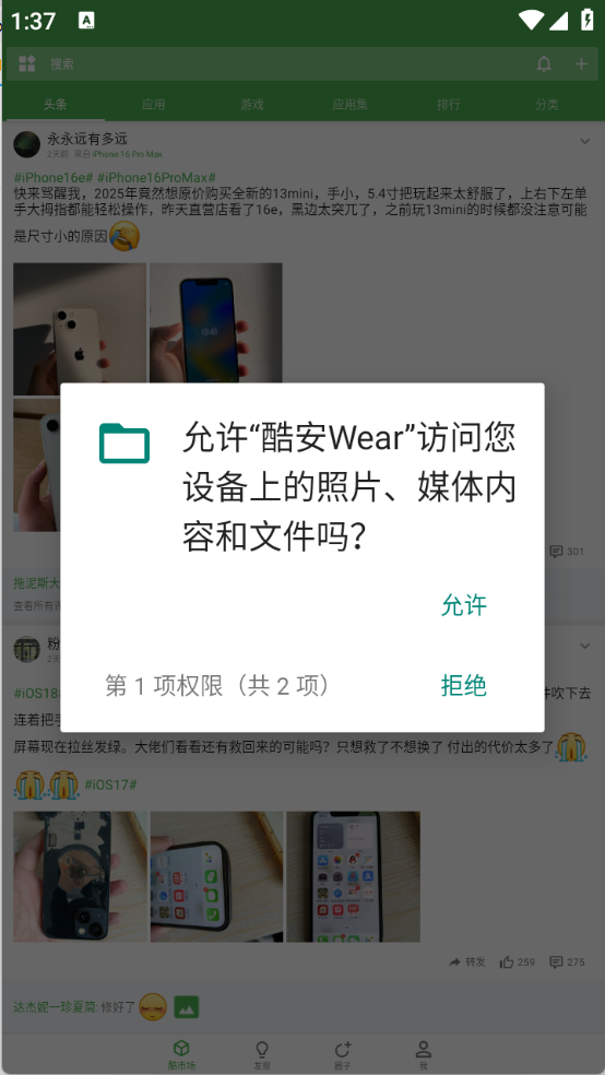 4、打开酷安Wear,首次启动时可能会提示您登录账号(如果您已有酷安账号)。