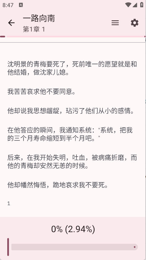5点击书籍名称,系统会自动跳转至该书籍的具体详情页面。点击齿轮形状的图标,就能打开阅读器的设置界面。通过底部工具栏的滑块,你可以调整阅读进度。