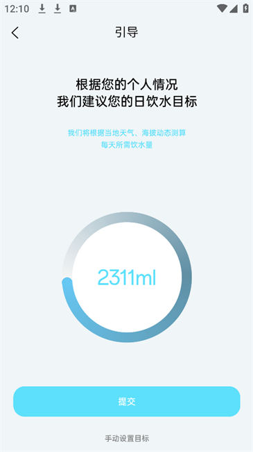 8.得到一个推荐的日饮水目标,点击提交