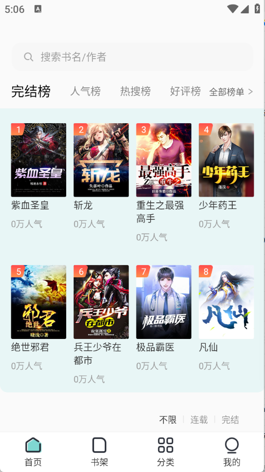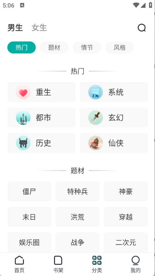 3、分类页面对小说进行了细致的归类,涵盖言情、武侠、都市等多种类型。