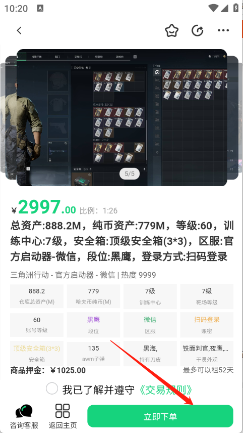 4用户找到目标账号后,点击“立即下单”按钮即可完成购买操作。