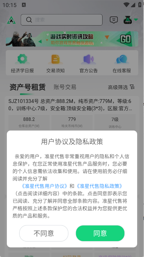 1、用户首先需前往3G游戏网准星代售平台,查看并同意隐私政策与用户协议。
