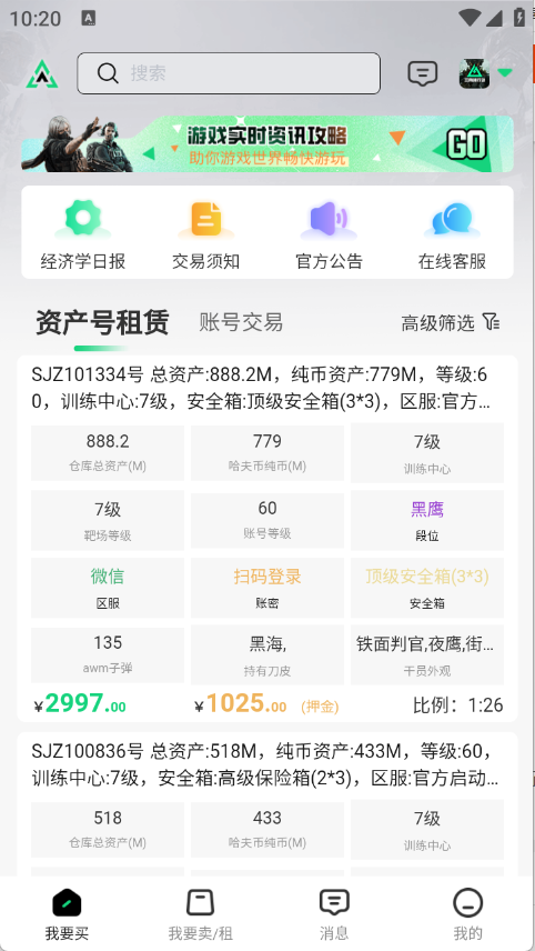 2打开主页面后,能看到各类游戏账号的展示,像热门的MOBA类、派对竞技类和战术竞技类游戏账号都包含在内。