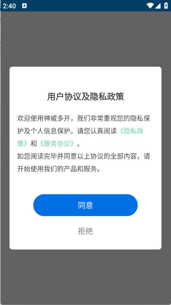1首先要在3G游戏网的神威多开功能界面,找到并阅读隐私政策和用户协议,确认无误后点击同意。
