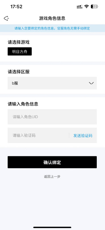 4、选择b服,然后输入角色uid以及验证码,确认绑定即可