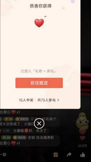 6、进入视频号以后就开始自动去别人直播间抢福袋了。