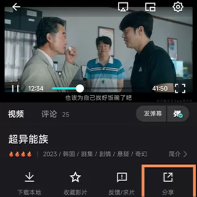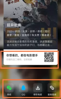 1、登陆后进入影片播放页面,点击分享,将海报或复制链接发送给好友。注:未登陆也可以分享,不过是为爱发电,因为没有账户存储您获得的积分。