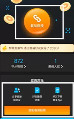 点击您的专属分享链接并打开,系统会为您发放20积分,请注意:单台手机重复操作无效。若成功邀请新用户完成注册,系统将继续