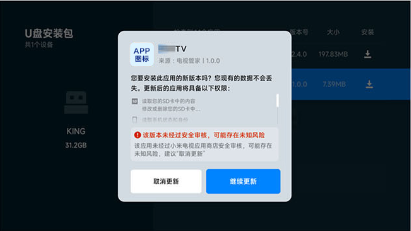 2、打开小米盒子的【设置】界面,进入【账号与安全】选项,找到并开启“允许安装未知来源的应用”功能
