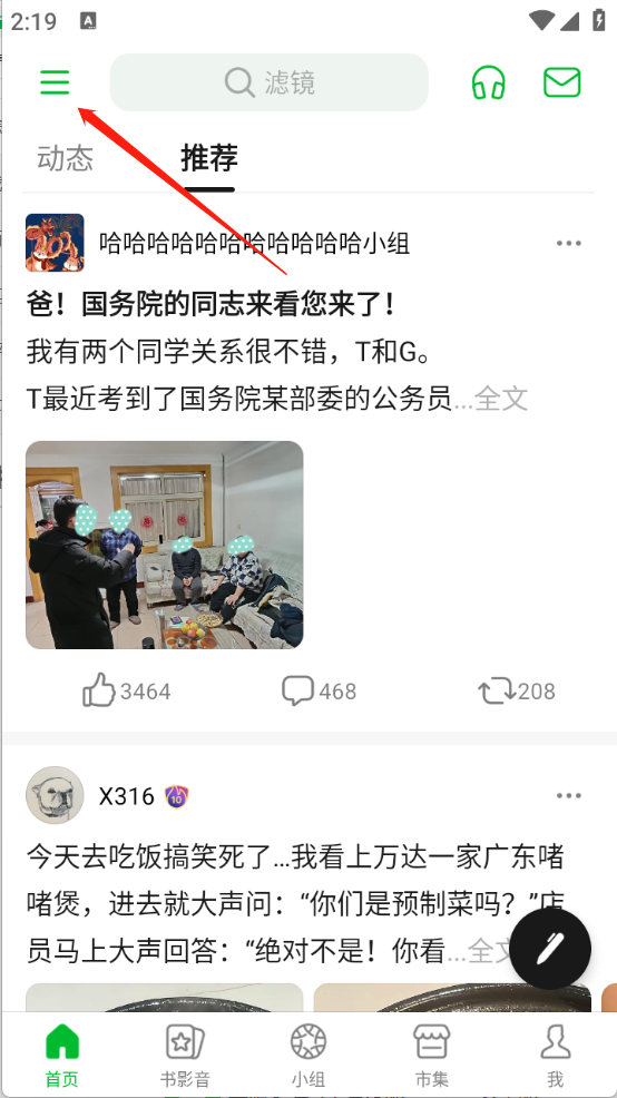 1、进入豆瓣之后点击左上角的三个横杠。
