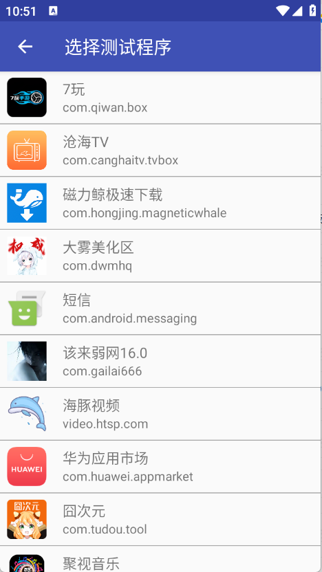 3、选择要测试的应用程序。