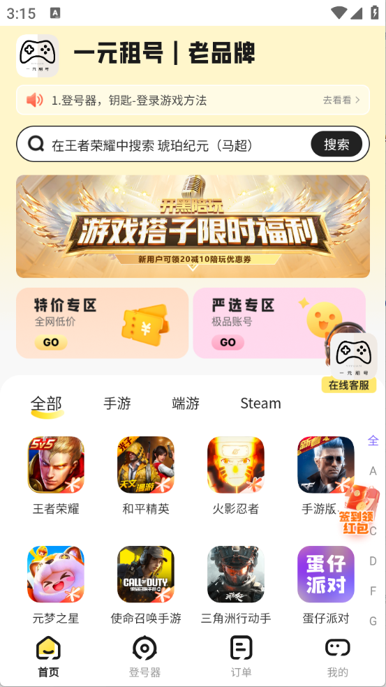 仅需一元就能租号,这里能租到各式各样的游戏账号,像王者荣耀、和平精英、蛋仔派对等热门游戏账号都有覆盖,所有提供的游戏资源均为当下热门款,性价比十分突出。还有专业客服在线为您服务,涵盖售前、售中到售后的全流程支持,助力玩家快速找到自己心仪的账号。
