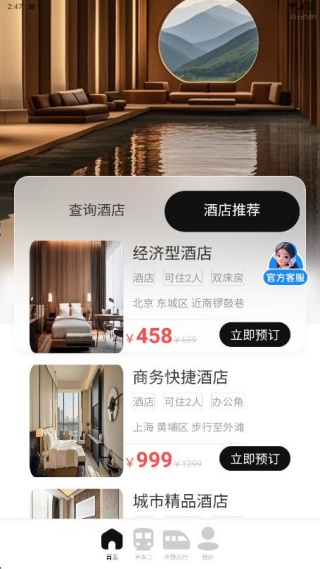 1首页整合了酒店查询与推荐功能,能帮助用户更快速地做出合适的选择。