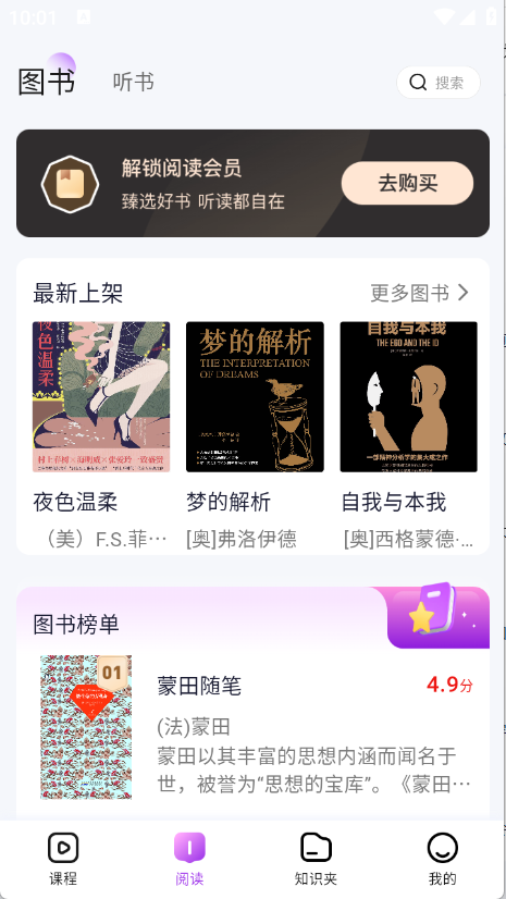 人文知库,有海量的图书资源,可以看书也支持听书模式,详细的图书分类,帮助用户快速找到自己喜欢的内容,听书模式可以彻底解放用户的双眼,享受优质的听书体验,可以将喜欢的书籍加入书架,随时打开进行阅读或者听书。