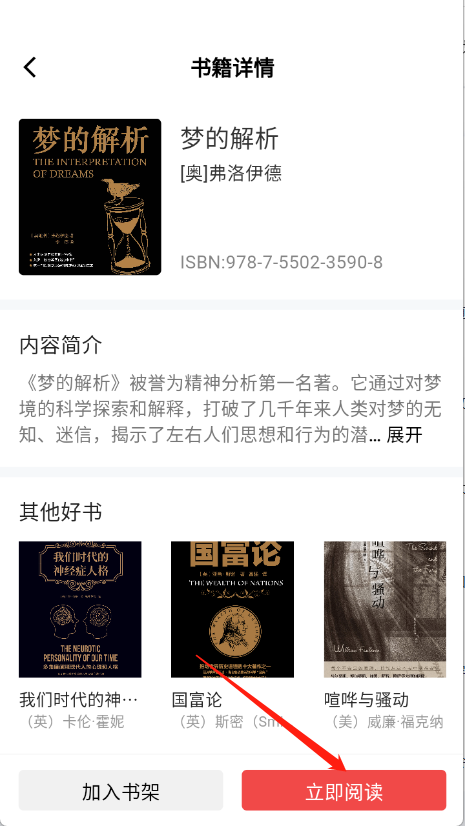 4、点开想看的书源进入详情页,点击“立即阅读”。