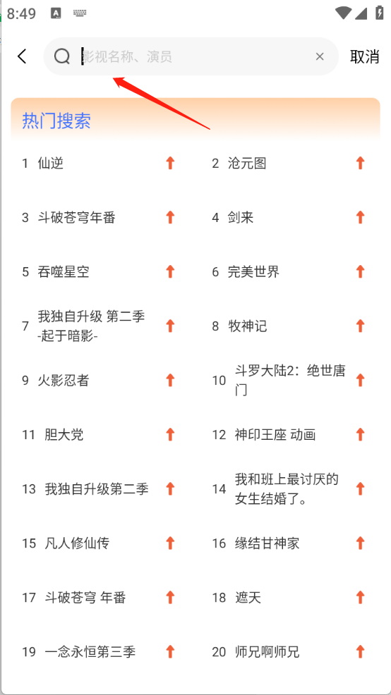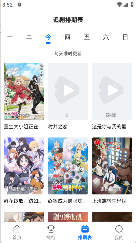 4、“排行”页面,根据当前热度将动漫进行排序。