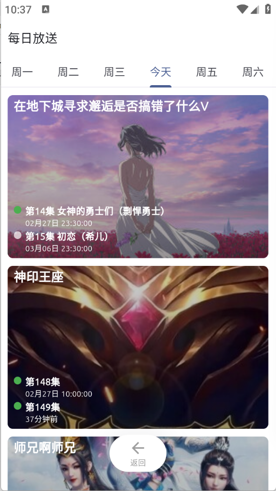 3、另外设有追番日历,方便用户查看每日更新的动漫动态。