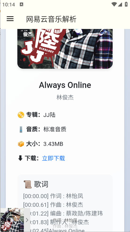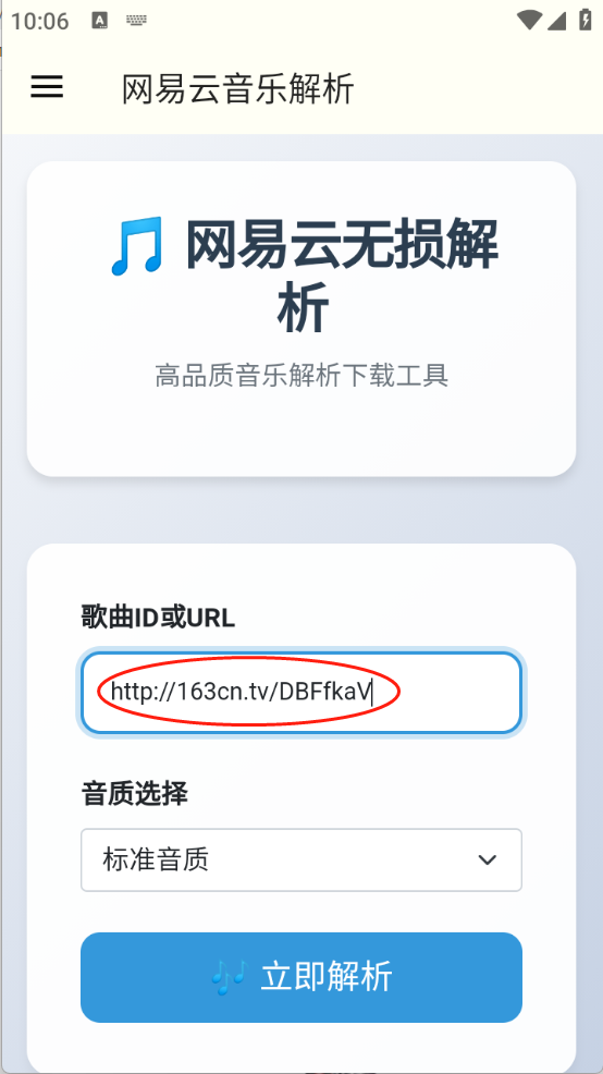 网易云解析,专业的音乐解析软件,只要输入歌曲ID或者分享链接就可以进行解析了,超级方便,让VIP歌曲不用充值会员就可以免费畅听,解析速度快,多种音质选择,让大家听歌更加顺畅。