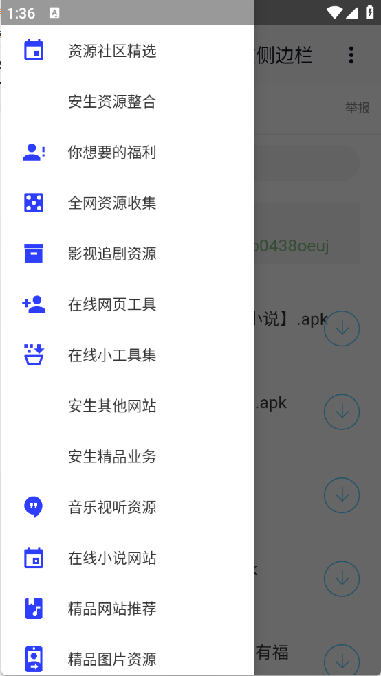 3进入主页面后,点击左上角呈三条横线样式的图标,页面会随即展示出各类资源分类选项。