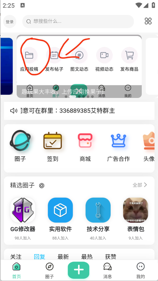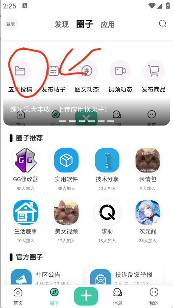 4、“圈子”页面,用户可以加入感兴趣的圈子,结交更多的好友。