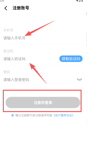 初次启动应用程序后,进入登录页面,点击页面底部的新用户注册按钮,通过手机验证码完成账号注册流程,之后还需进行实名认证操作。