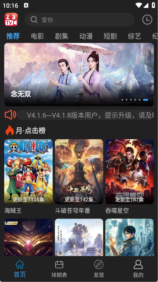 3、“排期表”页面是为用户提供每天的影视更新情况。