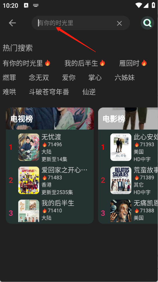 2、首页顶部栏中汇集了很多的影视资源,包含了电影、电视剧以及动漫等类型。