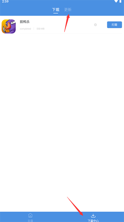 1、进入之后,点击右下方的中心,上方会有更新按钮点击。